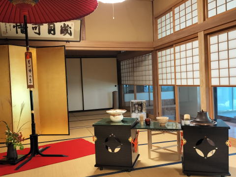 当日の茶室の設えです。今回座禅会の人々と、またシャガのメンバーの子供や、ママ友とその友達、又村のお茶を愛する人たちが 集まってくれました。村に移住した人やその友人でドイツ人のお嬢さんもお茶を楽しんでいました。 |