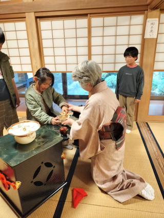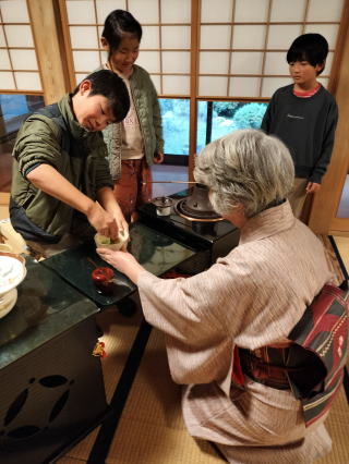 | 子供たちは茶筅を振るのが珍しく、教えて下さいと希望して一生懸命に茶筅をふっていました。 |